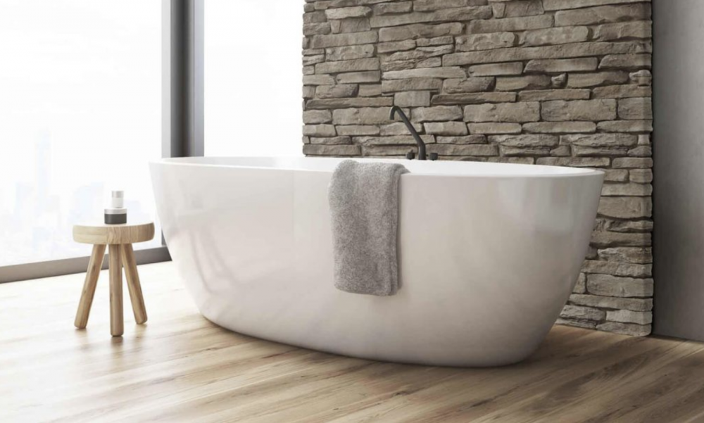 1. Brick Accent Wall – To complete a stylish bathroom in your home, a hip brick accent wall might be just the feature needed to elevate an otherwise ordinary space. This simple Botany Bay accent wall (below) adds enough engaging texture and tones to make this bathroom feel like it lives in a cool city restaurant or boutique hotel. Add your favorite light fixtures, mirrors, and vanity, and instantly your bathroom feels more fashion-forward without forcing it or copying the latest trend: